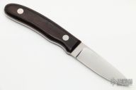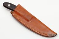 This Working Hunter by the late George Herron features a satin finish drop point blade .123" Blade Stock, .858" Blade Depth. Full tang construction with cocobolo handle. Comes with original leather sheath. Has a few light scratches, otherwise excellent condition.