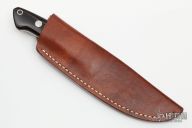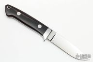 I have been making knives since 1992 and have concentrated on Loveless style knives since buying the book "How To Make Knives" early in my knife making. Over the years I have worked hard to improve the fit and finish of the knives that I make and I hope to continue to improve. In the years to come I hope to come up with new designs and start making a few folding knives. I would like to thank Steve Johnson and Mike Lovett for their willingness to share their knife making knowledge. I have been using CPM-154 for my main blade steel the last couple of years. I like the way it finishes and it makes a fine knife. I entrust Paul Bos with the heat treatment of my knives. Paul heat treats my CPM-154 blades to 60-61 RC. The standard Vestal knife will have a stainless guard or bolsters and stainless bolts or pins. I like to use natural handle materials for the handle scales but if your knife is going to see hard use, I will be glad to put Micarta or another synthetic on the knife.