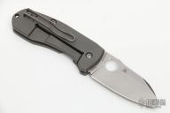 This Techno 2 from Spyderco features a tumble finish blade with thumb hole. Tumble finish titanium frame with notched blue G-10 backspacer. Comes with original box and papers. Has some light scratches throughout, great condition otherwise.