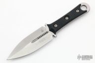 This SBD by Microtech Knives and Borka Blades features a stonewash finished double-edged blade with .188" blade stock and 1.556" blade depth, full tang construction with black G-10 scales. Comes with the original kydex sheath, box and papers, dated 05/2020 s/n 174. Has some sheath wear. Excellent Condition.