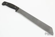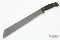 This Combat Machete by Bob Terzuola features a bead blasted blade with .069" blade stock and 2.137" blade depth, full tang construction with black linen micarta scales. Has some light staining on the blade, otherwise excellent condition.