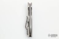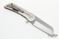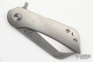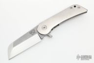 This KD #1 by Grindhouse knives features a ahnd rub satin finished blade with tumble finished flats a flipper. The handle has a hand rub satin finished titanium frame with matching backspacer, tip up "Cyrstal" titanium clip. Nice detent, lockup and blade seating, rides on bearings. Includes a COA. New from maker.