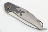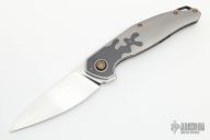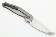 This Neo by Jens Anso features a hand rub satin finished blade with notched flipper. The handle has a checker milled titanium frame with zirconium inlay, tip up clip and backspacer with lanyard hole. Has a stainless steel lockbar insert and over travel stop. Rides on bearings. Nice detent, lockup and blade seating. Comes with a original box and COA dated July 2022. New from maker!
