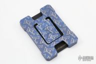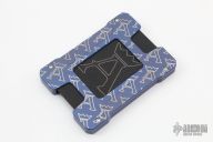 The Matrix is a small pocket sized credit card holder that has the ability to hold as few as one or as many as 6-7 cards using a top-facing tensioned titanium spring. (also works great for business cards). This limited edition is made from titanium in two different color, natural silver grey and blue. Each Matrix is laser engraved with my crowned A logo across both front and back. Each color is limited to 6 pieces and are serial numbered 1-6