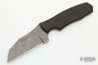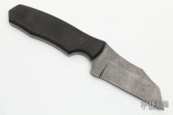 This AK5 by Alfa-Knife features an acid etched Wharncliffe blade, .118" blade stock and 1.253" blade depth, full tang construction. The handle has brown micarta scales, white g10 liners, and black pins. Comes with kydex sheath. Excellent condition.