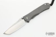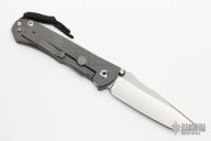 This Unumzaan from Chris Reeve Knives features a tanto style stonewashed blade with dual thumb studs and notched thumbrest. The handle is comprised of bead blasted and milled titanium with matching tip up clip. Lanyard pin with lanyard and spacer bead in pommel. Comes with original box, papers and COA dated April 22, 2020. Has one scratch on the clip, excellent condition otherwise.