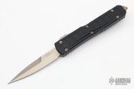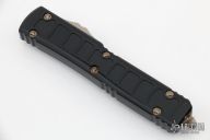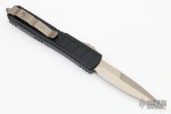 This Ultratech II features a bronze bayonet shaped blade. The handle has a blackaluminum frame with a "stair step" design for better grip. Stainless steel tip down clip marked 12/2021 with s/n 098. Comes with original box, excellent condition.
