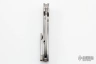 This rendition of Model 1 is a mid-tech, flipper knife, with a frame lock. The handles are made from milled titanium. The blade is made of S35VN stainless and has been heat-treated and cryogenic tempered. The blade rides on ceramic caged bearings and hardened stainless thrust washers. The pivot and pivot screw has been made from hardened 416 stainless. The liners and pocket clip are made from titanium while sporting a ceramic detent ball. The knife and materials used are all 100% American Made. Comes with zippered case. Excellent condition.