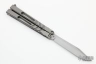 This Alpha Beast Balisong from Blade Runner Systems (BRS) features a bead blast finished clip point blade. The handle is comprised of milled titanium with T latch on pommel. Includes original zippered case, box and papers. Has a couple marks on the latch, excellent condition.