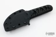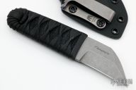 This Talon by Ben Tendick of BRT Bladeworks features a tumbled wharncliffe blade, .202" Blade Stock, 1.254" Blade Depth. The handle has a Japanese style wrapped handle over a black epoxy soaked hemp under wrap. Includes kydex sheath with titanium clip. Excellent condition.