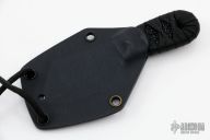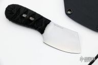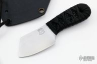 This Dao Inhabitant by Burchtree Bladeworks features a satin finished blade with nice hamon, .121" blade stock and 1.326" blade depth, hidden tang construction. The handle has flat black cord wrap over stingray skin with a Damascus menuki. Comes with a kydex neck sheath. Has a couple light scratches, otherwise excellent condition.
