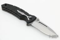 The Ontario XTREME MILITARY XM Series knife features a robust design and overbuilt construction. With a handle that is designed to feel similar to a fixed blade in the hand, these knives provide the perfect balance between heavy-duty performance and ultra-lightweight materials. This combat issued 3.375" blade features cryo-quenched Bohler N690 Cobalt enhanced stainless steel which provides excellent corrosion resistance while still maintaining excellent edge retention and ease of resharpening. Combined with the precision machined aircraft aluminum handles and titanium liner locks, the Ontario XTREME MILITARY XM-1 knife provides heavy duty performance in a lightweight package that is carried across the globe by the men and women of the U.S. Armed Forces. Features: Meets US Military Specifications, Cryo-quenched Bohler N690 Cobalt enhanced stainless steel blade, Aircraft aluminum handle, Titanium liner lock. Comes with original box. Excellent condition. First Production Run #254/300. Made in Italy.