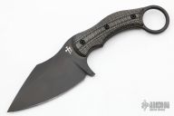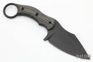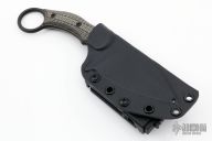 This SRambit by Fox Cutlery is a Borka Blades design, it features a black blade with false top edge and notched thumbrest, .197" blade stock and 1.609" blade depth, full tang construction with black canvas micarta scales. Comes with kydex sheath with belt clip and original box. Has a couple light scuffs, excellent condition otherwise.