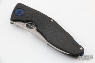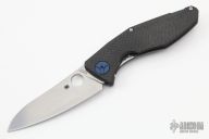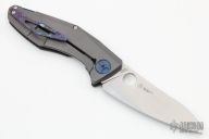 Dmitry Sinkevich is one of the hottest custom makers in the knife industry today. His first Spyderco collaboration, the Drunken, showcases his ability to combine artistic design and unparalleled craftsmanship with practical function. The blade of this knife is full-flat ground from CPM-S90V stainless steel and features a tumbled finish. It is paired with a stylishly ergonomic handle that includes a titanium scale on one side and a solid carbon fiber scale and nested stainless steel liner on the other. The titanium scale is "webbed" to reduce weight and forms the basis for the knife's Reeve Integral Lock (R.I.L.) mechanism, which includes a long-wearing stainless steel interface. Both scales are meticulously machined with the intricate "drunken" texture that gives the knife its name and is accented by a matching color-anodized backspacer, pivot assembly, and right-side, black timascus tip-up pocket clip. Comes with zippered case and original papers. Excellent condition.