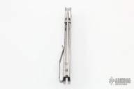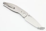 This Atom Linerlock by Three Rivers features a stonewash finished blade with dual thumbstuds. The handle has milled titanium scales, titanium liner with a titanium tip up reversible clip. Nice detent, lockup and blade seating. Comes with original box, and papers. Excellent condition.