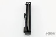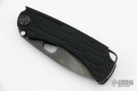 This Colonial G from Medford Knife and Tool features a black finished drop point blade with thumb hole. The handle is comprised of a milled black G-10 "A" side scale and black titanium lockside with matching tip up clip over a steel backspacer with integrated lanyard bail. Includes original box, papers and Medford Knife and Tool patch. Excellent condition.