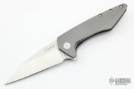 The Koenig Mini-Goblin 3 inch folding pocket knife is a collaboration between Edison Barajas of Sharknivco and Koenig Knives. The Mini-Goblin features a 3 inch stonewashed blade with notched thumbrest and flipper. The handle has a bead blasted titanium frame with an anodized titanium backspacer and tip up clip with hidden screws. Comes with original box and COA dated 9/17/19. Excellent condition.