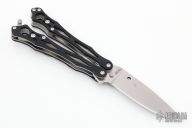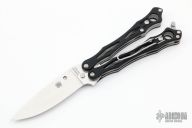 This Spyderfly 2 Balisong by Spyderco has a satin finished blade. Handle is black G10 over stainless steel liners and stainless steel paper-clip style pocket clip. Excellent condition.