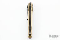 This Socom Elite Auto has a black tanto blade with satin flats, notched thumbrest. Champagne gold aluminum handle with carbon fiber inserts. Stainless steel clip, tip down carry. Glass breaker. Dated 07/2019 and s/n 3871. Comes with original box and papers. Excellent Condition.