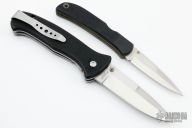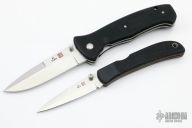 This SERE 2000 Linerlock Folder by Al Mar has a satin finished spear point blade with dual thumb studs. Handle is black G10 over stainless steel liners, tip up reversible clip, and lanyard hole. Has some light scratches, otherwise excellent condition.