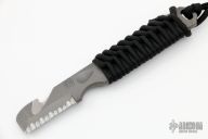 This Cop Tool from Wilson Tactical features a bead blasted serrated blade with strap cutter and sharpened front edge, .190" blade stock and .997" blade depth, full tang construction with black paracord wrapped grip, lanyard hole at the butt. Comes with kydex sheath with IWB loop. Excellent condition.
