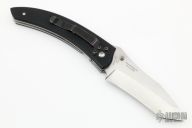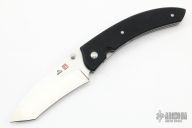 This Payara by Al Mar features a satin finished tanto recurve blade with dual thumbstuds and a notched thumbrest. The handle has black G-10 scales, stainless steel liners, and a tip down black stainless steel clip. Has a little wear on the clip, otherwise excellent condition. First Production #072/200