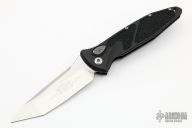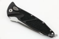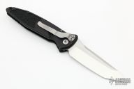 This Socom Elite Auto has a stonewash finished clip point blade with a standard edge. Black aluminum handle with non-slip inserts. Stainless steel clip, tip down carry. Glass breaker. Dated 09/2018 and s/n 0806. Comes with zipper case. Has some scratches on the blade, otherwise excellent condition.
