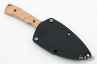 This Combat Mini by Doc Shiffer is part of a limited edition of 20. It features a drop point blade with hamon and notched thumbrest, .133" blade stock and 1.240" blade depth, full tang construction. The handle has bird's eye maple burl scales. Comes with a leather lined kydex sheath and COA dated 5-22-22. New from maker!