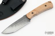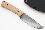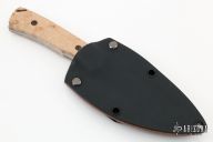 This Combat Mini by Doc Shiffer is part of a limited edition of 20. It features a drop point blade with hamon and notched thumbrest, .133" blade stock and 1.240" blade depth, full tang construction. The handle has bird's eye maple burl scales. Comes with a leather lined kydex sheath and COA dated 5-22-22. New from maker!