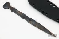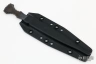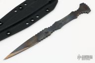 This Plan-B Spike by Bawidamann Blades features a Carbon Fire finish with notches. Comes with a a kydex sheath. New from maker.