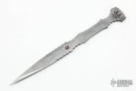 This Plan-B Spike by Bawidamann Blades features a plain steel finish with notches. Comes with a a kydex sheath. New from maker.