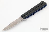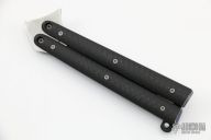 This Model 1 Balisong by Les Voorhies features a satin finished blade. The handles have carbon fiber scales, anodized titanium liners and stainless steel spacers, tip up stainless steel clip. #004. Has a couple very light scratches, otherwise excellent condition.