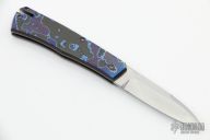 This Mini Solitude TL by Jared Oeser features a hand rub satin finished blade with nail nick. The handle has DarkTi covers with "Mutant" shield, black G-10 liners, stainless steel backspacer. Nice lockup and blade seating. Comes with original box, leather slip sheath and COA dated 6-2-21. New from maker at the 2021 Blade Show.