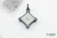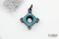 This Double Action Killbox pendant by Steel Flame features a solid silver warrior backing , winged crusader cross inside, and a silver jumpring. It has a niobium center with .45 bullet hole and black titanium screws. Comes with ball chain. New condition.