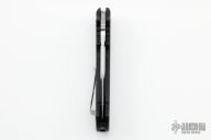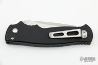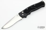 This M2 Auto by Walter Brend features a mirror finished hand ground recurve blade with a notched thumbrest. The handle has a black aluminum frame with a black lip pearl push button, rayskin inlays and a tip up stainless steel clip. Comes with a padded and zippered case. Excellent condition.