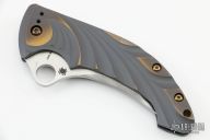 Canadian knife veteran Brian Tighe has spent the last 40 years honing his skills as a quality knife maker, creating award-winning knives that are consistently recognized in the industry for their bold sense of design, impeccable craftsmanship and precision engineering. Brian Tighe specializes in custom folding tactical knives that combine high-tech materials with high-tech styling. Each blade is one-of-a-kind in style featuring original locks and steel designs known for their supreme functionality. All of Brian’s tactical blades are made with top-quality Titanium, Carbon Fiber, Damasteel and other top-quality Stainless Steels. He is currently working with “Glow in the Dark” Carbon Fiber as well as “Glow in the Dark” inlays in various composites. Brian’s knives have been featured in respected publications like BLADE magazine, Knives Illustrated, Tactical Knives and American Handgunner as well as in all four of David Darom’s books “The World of Art Knives”. Brian won “Most Innovative Design” at the 2010 and 2012 BLADE show. Beyond his custom knife work, Brian has worked on production collaborations with Columbia River Knife and Tool (CRKT) and Spyderco Knives. In June 2016, Brian launched his own line and business venture: Brian Tighe & Friends. BT&F specializes in bringing innovative and advanced technology to the mid-tech knife market making affordable, professional-grade folding knives, made in the USA and assembled by hand. In June 2017 at BLADE Show BT&F were awarded “Most Innovated Design” for the Tighe Breaker Integral Automatic the 1st of its kind.