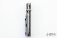 This Chaves American Made Knives Redencion 228 is a framelock folder based on the popular Redencion custom knife made by Ramon Chaves. This piece features a tumbled blade with notched thumbrest and dual thumbstuds. The handle is comprised of bead blasted titanium scales over titanium barrel spacers. Matching signature "Chaves Skull" tip up clip. Lanyard pin in pommel. Has a couple light scuffs, otherwise excellent condition. Comes with a zippered case.
