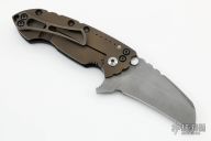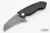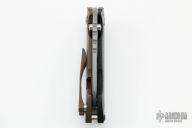 This Solo framelock flipper from Direware Knives features a carbon fiber and anodized titanium frame and matching pocket clip. The massive tumble finished blade is .195" thick and 1.639" deep. Smooth flipping action that requires no wrist movement with a strong lock up, nice detent and blade seating is dead center. Clip can be positioned for tip up or tip down carry. Has a few light scuffs, otherwise excellent condition. Comes with original box.