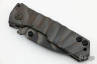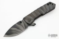 This FIFP (Fear is For Prey) framelock flipper by Crusader Forge features a KG 2401 F "3D" finished blade and titanium frame. Matching titanium clip, tip up carry. Smooth action. Strong lockup. Very nice work. Includes original box and papers. Excellent condition.