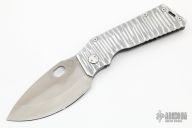 The Tactical Fighting Folder (TFF-1) is the ultimate ambidextrous tactical folder. We developed this knife for military & law enforcement personnel. This design circumvents fixed-blade restrictions and accommodates tactical operators looking for a space-saving knife carry option. This blade is meant to augment or replace a fixed blade and is built for hard use. The knife handle is 6061-T6 aluminum and titanium. The handle has been modified by Phantom Steelworks. All models have D2 blades and a one-hand deploy, HEAVY liner lock design. The blade can be one or two-hand stowed and unintentional retraction of the blade is nearly impossible. Has a few light scratches, otherwise excellent condition. Comes with original box and papers.
