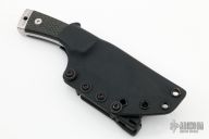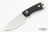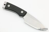 This knife features a stonewashed blade made from Becut Steel. A high end stainless steel that will not tarnish or rust in salt water and withstand below zero degrees Celsius embrittlement. It has a notched thumbrest, .182" blade stock and 1.370" blade depth, full tang construction. The handle has shock resistant carbon fiber reinforced resin with no absorption rate, so even after the smelliest of jobs the handle will not absorb any smell. The butt is a separate piece of stainless steel attached with two screws. Comes with a kydex sheath with TekLok. Excellent condition.