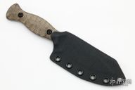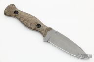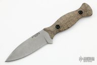 This Grinch by Kramer Custom Knives features a stonewashed blade with notched thumbrest, .118" blade stock and 1.010" blade depth, full tang construction with green canvas micarta scales. Comes with a kydex sheath. Excellent condition.