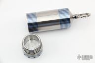 This titanium Stash Tube is satin finished with flutes and dimples. Has some light scratches, otherwise excellent condition. 1.12" internal width.