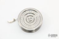 This titanium Yo-Yo is satin finished and has dimples. Has some light scratches, otherwise excellent condition. 2.75" diameter.