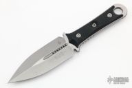 This SBD by Microtech Knives and Borka Blades features a stonewash finished double-edged blade with .188" blade stock and 1.556" blade depth, full tang construction with black G-10 scales. Comes with the original kydex sheath, box and papers, dated 05/2020 s/n 236. Excellent Condition.