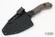 This WGH by Shaun Garretson features a satin finished blade with .165" blade stock and 1.768" blade depth, full tang construction with sculpted black/brown G-10 scales. Comes with a kydex sheath with Ulti-Clip, and a zippered case. New from maker.