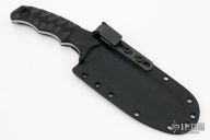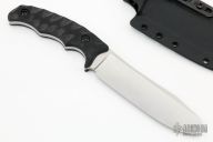 This No B.S. by Shaun Garretson features a satin finished blade with .172" blade stock and 1.308" blade depth, full tang construction with sculpted black G-10 scales. Comes with a kydex sheath with Ulti-Clip, and a zippered case. New from maker.