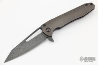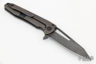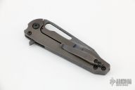 This Mini Mako framelock flipper from Gavko Knives features a dark tumble finished blade with a textured thumbhole and flipper. The handle has anodized and tumbled titanium scales that have a matching clip positioned for tip up carry. Nice detent, lockup and blade seating. Comes in a zippered pouch. Has a few light scuffs, otherwise excellent condition.
