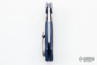 This White Swan Linerlock Flipper from Allen Elishewitz features a hand rub satin finished drop point blade with swedge and flipper. The handle is comprised of bead blasted and dovetailed titanium bolsters, green linen micarta scales, textured and anodized titanium liners, Damascus backspacer, bead blasted stainless steel tip up pocket clip with rollerball. Includes padded velcro case and "Elishewitz Custom Knives" patch. Excellent condition.