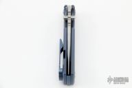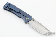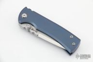 This Chaves Ultramar Redencion features a belt satin finished blade with the Chaves logo. The handle is made up of a anodized titanium, skull pocket clip (positioned for tip up carry), and a matching titanium backspacer. Blade is centered when closed, and locks up with no play. This piece is in excellent condition with no signs of use or carry. Comes in the original packaging with additional clip.